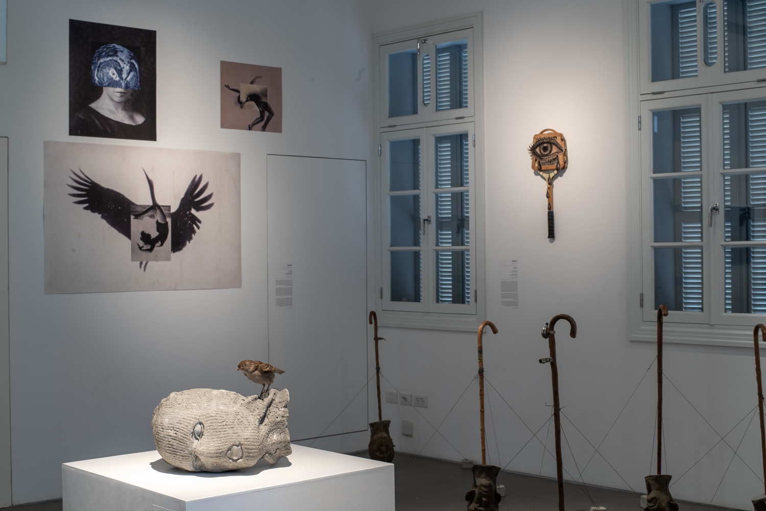 Things That Never Happened is a living dialogue between past and present, an intricate web of intersecting themes and connections. Surrealist syntax allows contradictory narratives of conflict and harmony to exist simultaneously in a reality of absurdity, loss, and fracture. The freedom to embrace contradiction out of creative motives, aims at preserving our spirit as individuals and as a society, and is an act of resistance. Complete insubordination is much needed in these times, because things have indeed happened before.