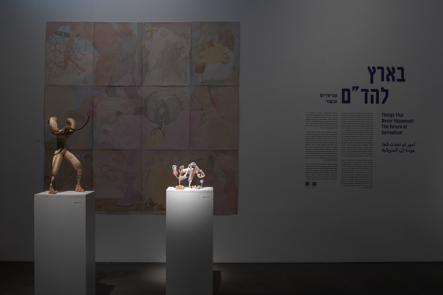 In this spirit, the exhibition Things That Never Happened gives local expression to undermining voices against the reality of our lives. The Talmudic expression “la-had’am” [never was] – refers to the question of truth and reality. Its literal meaning is that things did not happen in reality. In Naomi Shemer’s popular song “Eretz La-Hadam,” “The Land of Never Was” is described as a cherished dream realm. The expression “la-had’am,” despite its negative form, also carries an opposite meaning, one of affirmation. It may refer to things that happened in reality, yet an ethical stance is taken, similar to the phrase “there are no such things,” which points to the uniqueness of the matter, or “there’s nothing, because there was nothing,” which decodes as denial and obfuscation of truth. The exhibition’s title reflects the irrationality and systemic breakdown.